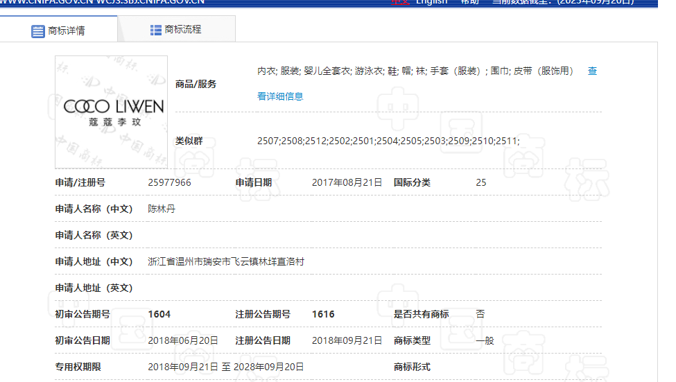 按理说,这枚商标经过异议不予注册,那后边如果再有申请类似的商标名称应该直接驳回才对, 但让人想不到是,2001年、2002年,一家北京的公司申请同样的几枚“李玟COCOLEE”商标, 竟然又都顺利通过。商标有效期至2013年或2014年,但因商标的有效期只有十年, 商标注册人在2012年被吊销,导致这些商标到期未续展而归于无效。 但这个注册人于2002年申请的另一枚“李玟COCOLEE”商标,因有效期至2014年, 导致现在还是个有效商标。 更让人觉得不可思议的是,2017年,有人申请了“蔻蔻李玟 COCOLIWEN”商标, 这枚商标竟然又顺利通过了! 很多明星确实是昙花一现,大红大紫几年后就归于沉寂。但李玟,一直是活跃在舞台上的, 别说2017年,就是现在,她在大家心目中的知名度也是非常高的,要不然, 很多人也不会听到她突然离世的消息痛心不已。但是,就是这样的“蔻蔻李玟COCOLIWEN”商标竟然获准了注册。 是,李玟生前再知名也不能独占“蔻蔻”两字,再说了,她的英文名字发音对应的中文不一定就是“蔻蔻”, 但是,就这个商标整体来看,这个商标注册人申请这样的名称,难道用巧合来解释?这个擦边球打得未免也太明显了些! 李玟的姐姐今天发文称,没有以COCO的名义去做纪念商品,会保留法律上的追究。 双乾知产顾问的内心真是感到无限的悲凉,生前,有人利用她的名气,去申请商标,去世后, 又有人利用她的名气,来捞一把。这些吃相难看的人就这样在人世上大摇大摆、 毫无廉耻的活着,世界好似是他们的一般。