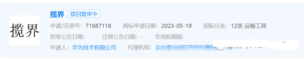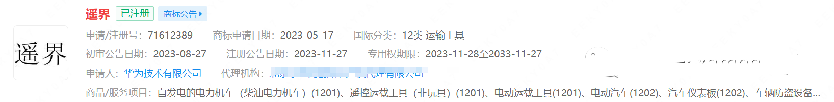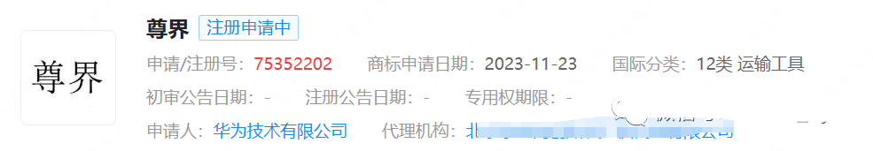 最近华为正在密集注册“界字辈”运输工具类商标