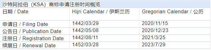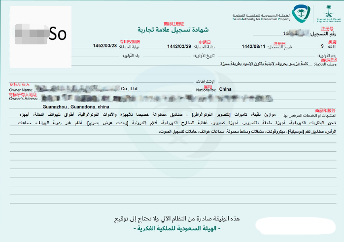 3、沙特商标从申请到公告约1个月,从公告到注册约3个月,