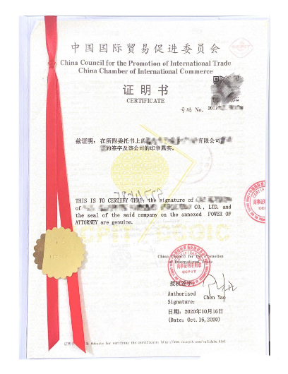 以及经中国贸促会认证的POA(商标代理委托书)原件。