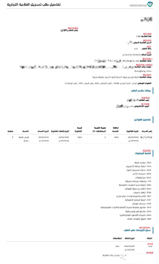 其中,申请的商品项目需要以沙特商标申请系统为准。