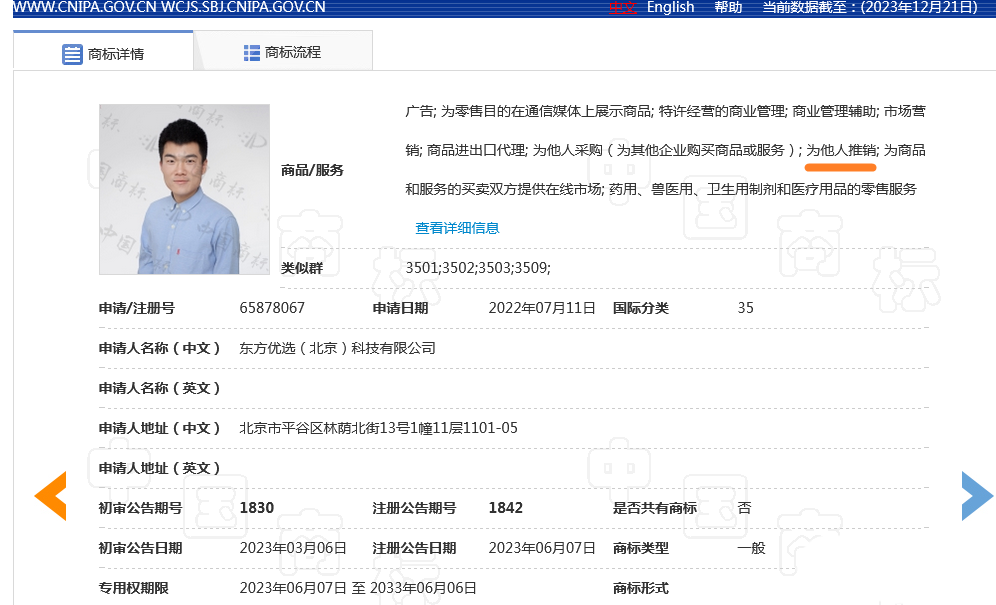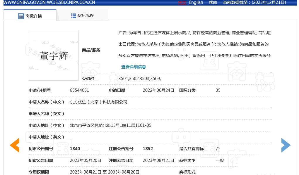 根据商标法的相关规定,我们认为东方优选向国知局申请注册以上两商标时,提交了董宇辉本人的授权或同意, 两商标已于2023年获得核准注册。鉴于董宇辉已经授权公司注册其姓名和肖像,这种授权无法单方撤回, 也就是说董宇辉无法以两商标侵犯自己的姓名权、肖像权为由要求国知局无效以上两枚商标。