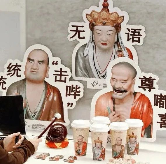 11月28日,景德镇中国陶瓷博物馆和喜茶联名推出了“佛喜茶拿铁”,联名活动致敬了曾龙升大师作品《釉下加彩十八罗汉塑像》。