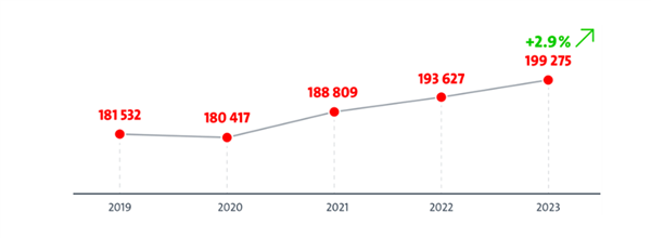 数据显示,2023年企业和发明人向欧洲专利局提交199275件专利申请,比上一年增长2.9%。