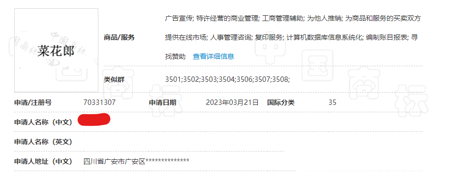初看这个“菜花郎”,正常的很。但这个商标却被以具有不良影响而被驳回。“菜花郎”会有什么不良影响呢? 我们熟知的一个酒类品牌“红花郎”不是叫得很响吗?仅仅一字之差,为啥“菜花郎”就有不良影响了? 该商标申请人和大家一样,很是不服,申请了驳回复审。申请人认为,“菜花郎”为自己独创,是出于销售策略、 品牌经营理念、拓展发展领域为目的创造的词汇,并无任何证据可以证明其作为商标使用会产生不良社会影响。 且申请人对“菜花郎”品牌已经进行了使用,经过大量宣传使该品牌在行业领域内具有相当高的知名度。 但是,尽管申请人说了这么多,该商标还是再次被驳回。 中国文字的博大精深在这里真的是体现的淋漓尽致。“菜花郎”和“红花郎”一字之差,但其含义却差之千里。 双乾商标顾问敢打赌,这个驳回理由,很多人都想不到。 商标局认为:“菜花郎”为网络上对感染尖锐湿疣的男性患者的戏称,是不能作为商标使用的。 经搜索得知,感染尖锐湿疣的患者会在患病表面会出现形似菜花的肿块,故这类人被网友戏称为“菜花郎”。 原来如此! 继“鸡鸭”这类词语经过网友的演绎,具有网络第二含义后,原来“菜花郎”这类词语在特定语境下也悄咪咪的具有了网络第二含义。 不与时俱进,真的是要被这个世界抛弃。