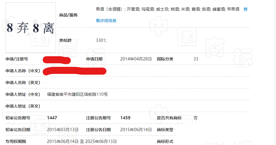 前几天无意中看到了一个白酒类的商标名称,叫“8弃8离”,看到的那一瞬间觉得有点奇怪,白酒一般被使用于社交场所,