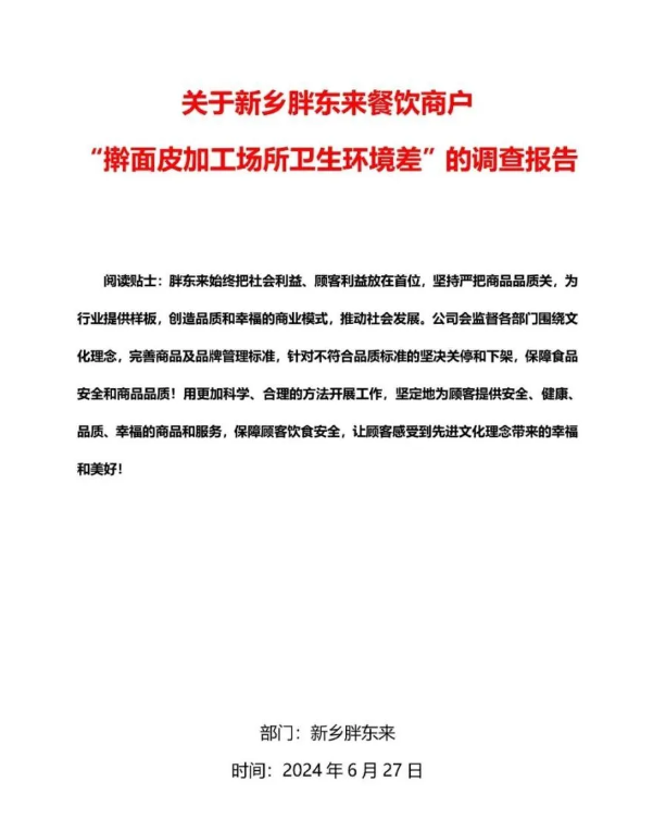 对此,6月26日胖东来发布情况说明,立即要求新乡两店餐饮部所有联营商户档口关停,