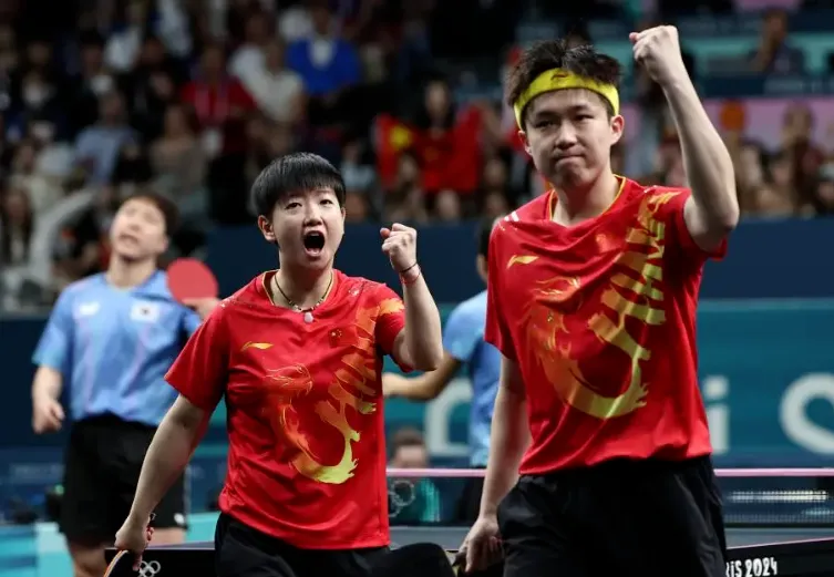 在巴黎奥运会乒乓球混双决赛中,中国组合王楚钦和孙颖莎以4比2战胜朝鲜组合李正植和金琴英,