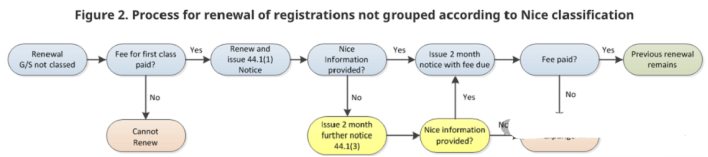 若分 类成功,则要求在2个月内补交多出类别的官费。官费补交后,之前的续展得以维持。若未补交费用,商标会失效。
