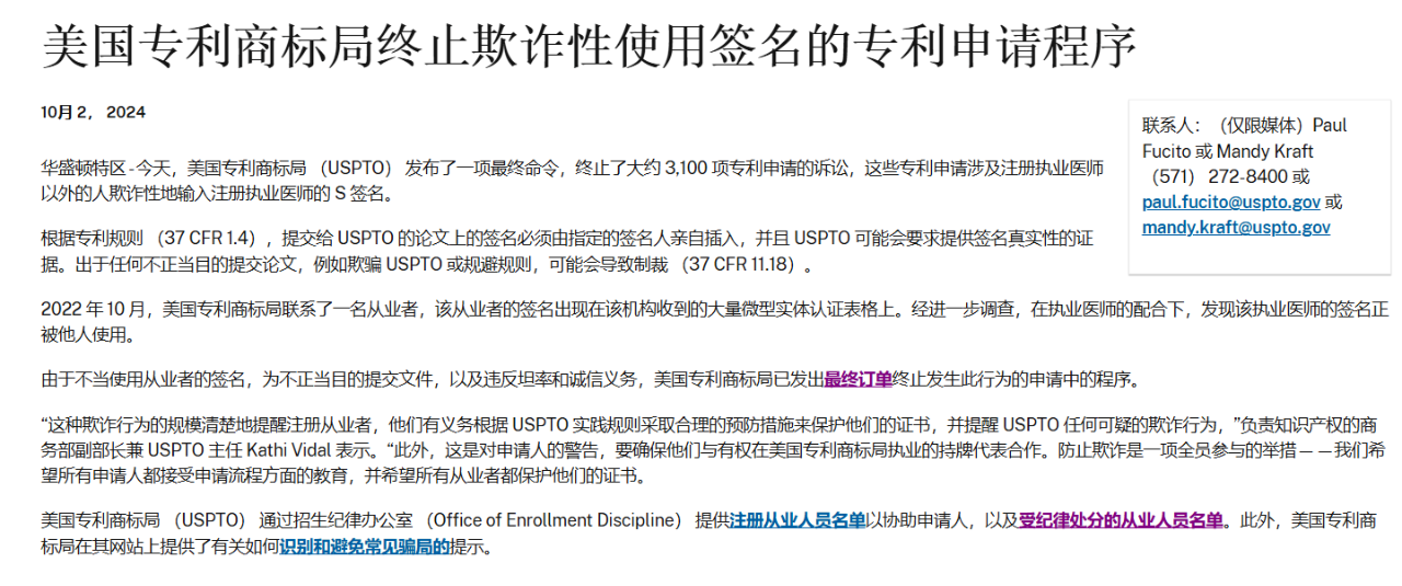 2024 年 10 月 2 日,美国专利商标局(USPTO)官方网站发布了一份处罚决定,终止了大约 3100 件专利的申请程序。
